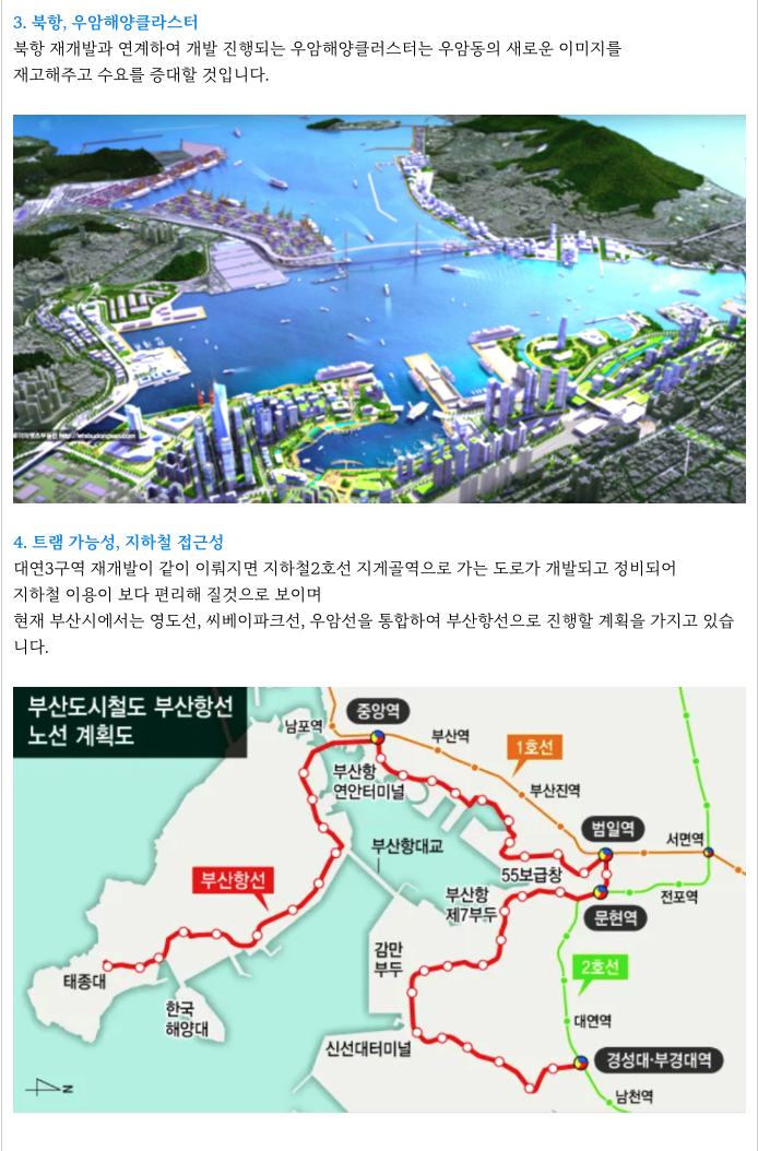 - 북항재개발, 우암해양클러스터, 트램 가능성.