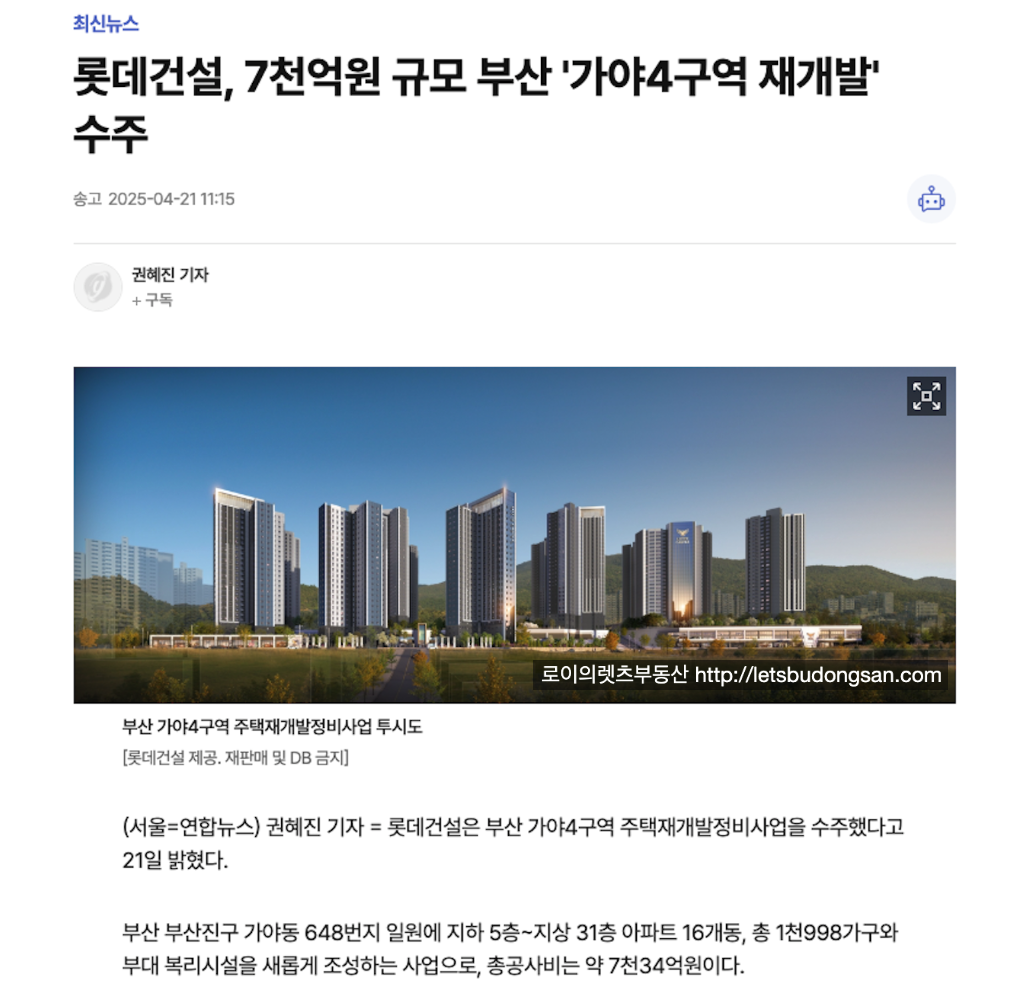 가야4구역 재개발 : 롯데건설 시공사 선정 소식 & 이후 일정 & 소액 급매 매물