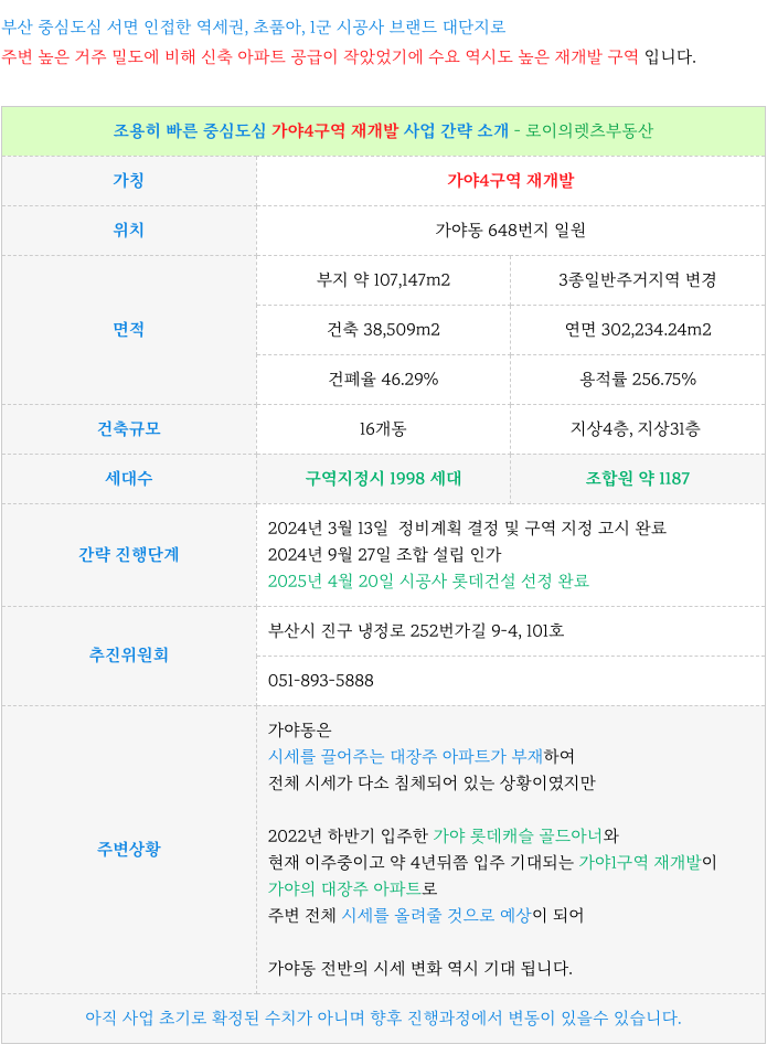 가야4구역 재개발 : 현재까지 진행 사항 & 예상 일정 체크 : 등 추가 정보는 아래 페이지를 참고 부탁드립니다.