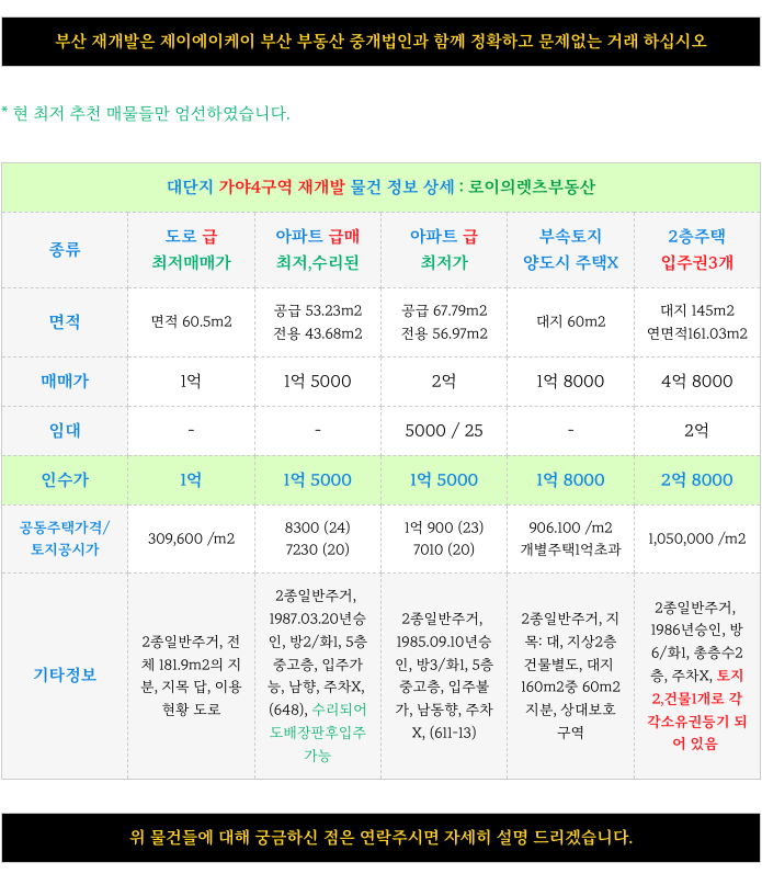 부산 경남 건물 토지 상가 주택 등 부동산 물건 투자 및 물건 접수 받습니다.