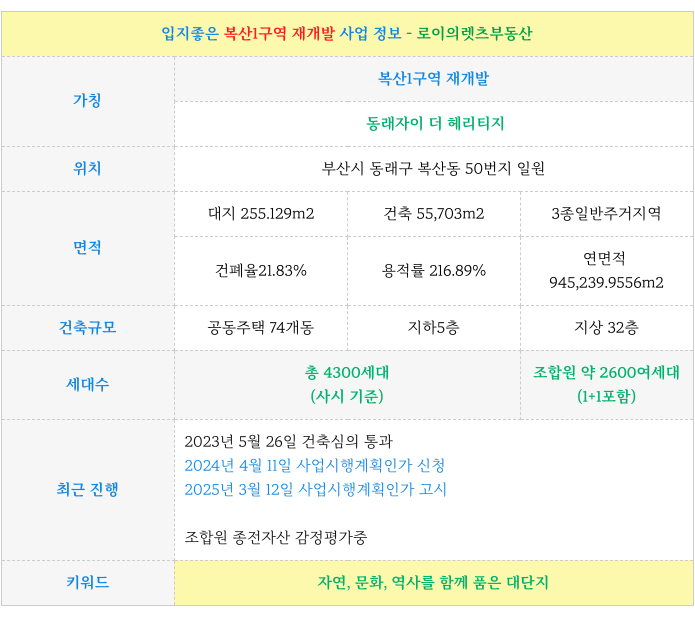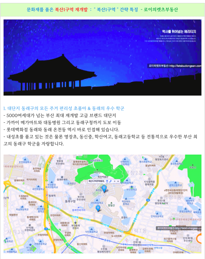 안녕하세요 로이의렛츠부동산 ( JAK 제이에이케이 부산 ) 입니다. 오늘은 동래구 대단지 복산1구역 재개...