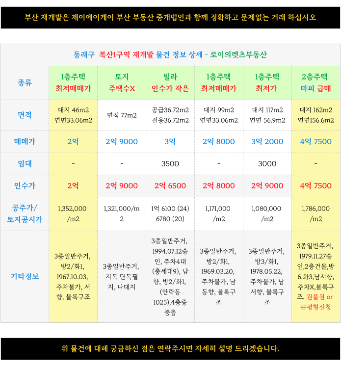 부산 전역 재개발에 대해 궁금하신 사항은 방문 또는 연락주시면 자세히 설명 드리겠습니다.