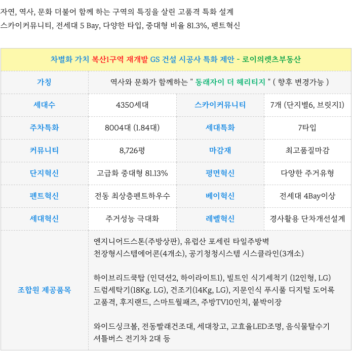 4. 복산1구역 재개발 : 시공사 GS건설 특화 주요 제안 :