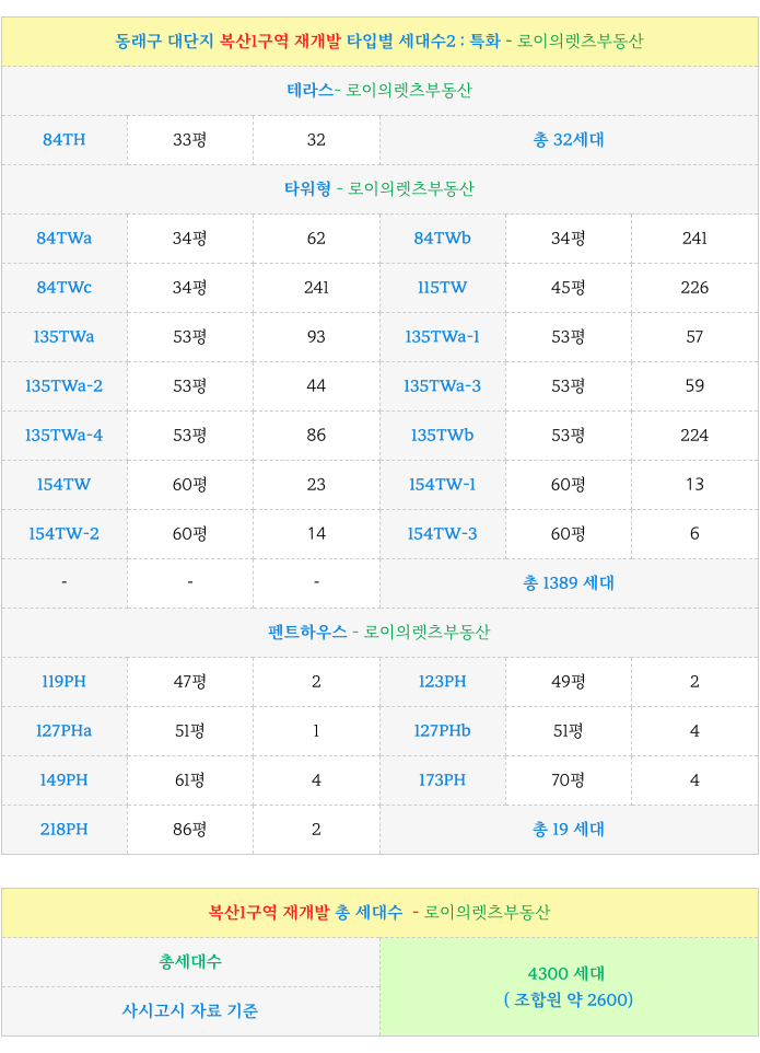 6. 복산1구역 재개발 : 각 타입별 세대수 :