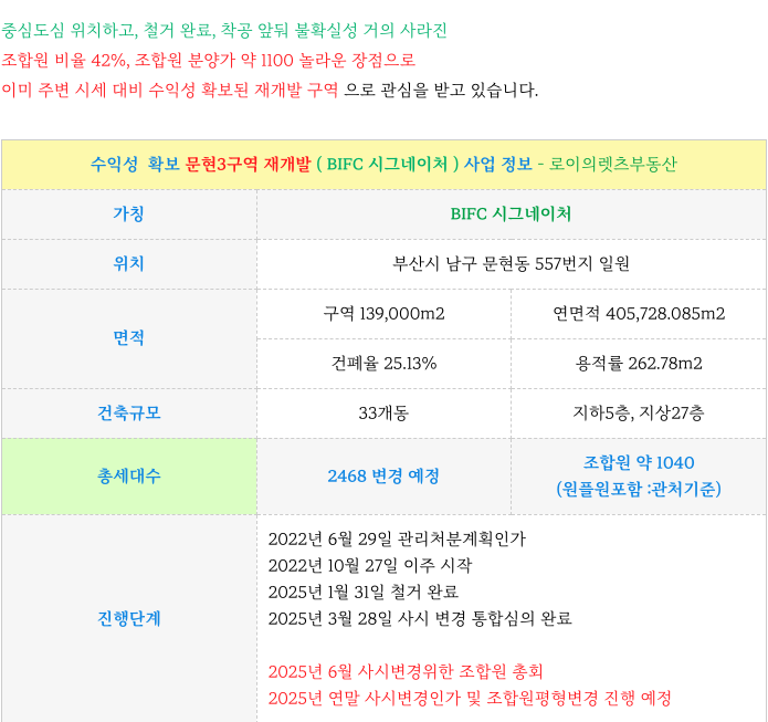 문현3구역 : 최저 매물 & 사시변경총회일정 및 이후 예상일정 ( 수익성 확보된 부산 재개발 )
