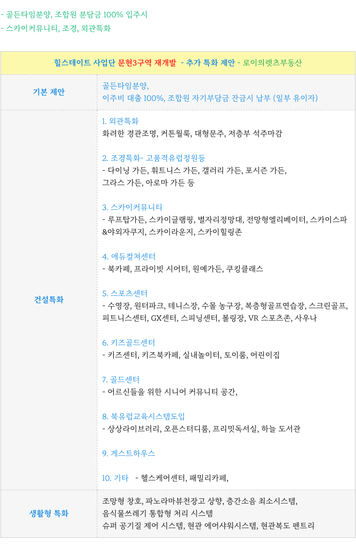 문현3의 입지와 위상의 높아짐에 따라 조합원 분들을 위해 추가 업그레이 제안을 하였습니다.