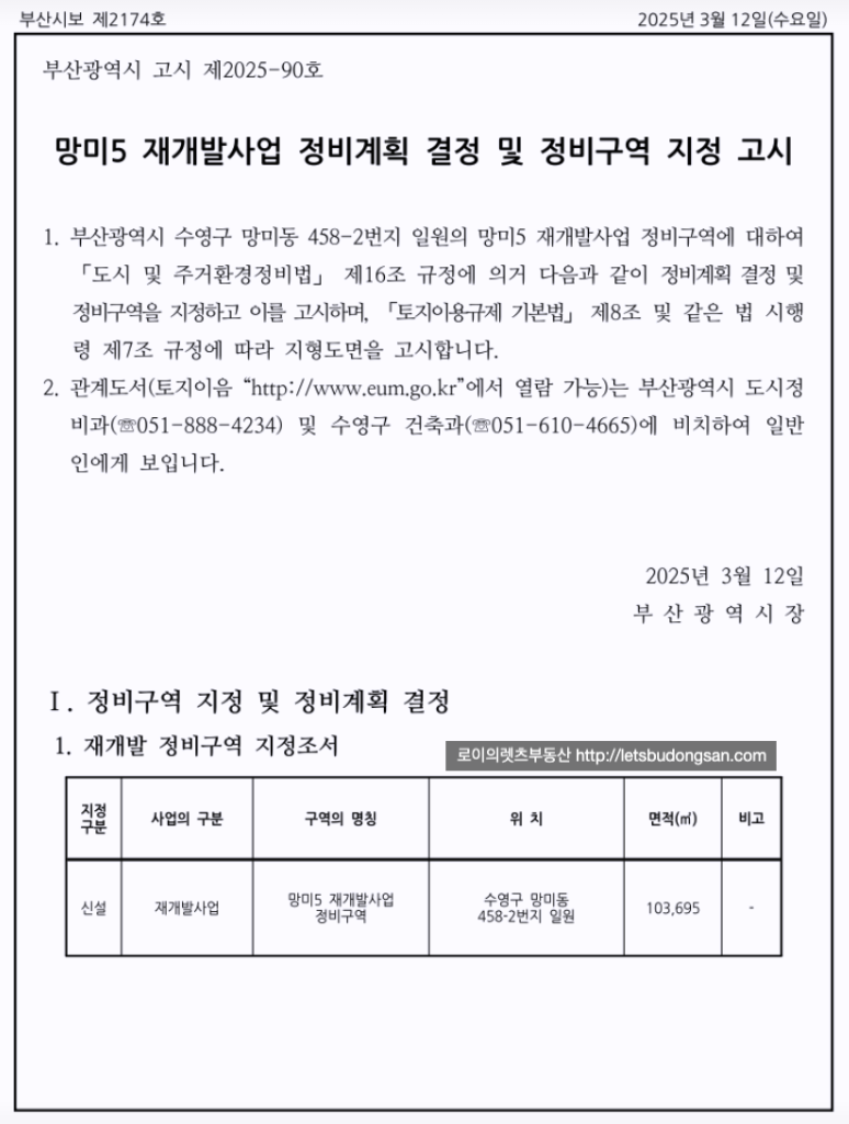 - 2025년 3월 12일 : 재개발 정비계획 결정 및 정비구역 지정 고시