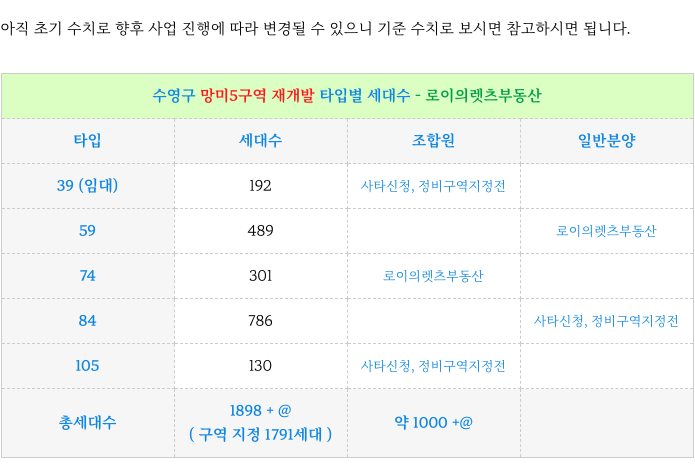 4. 계획된 각 타입별 세대수 : 수영구 망미5구역 재개발 :