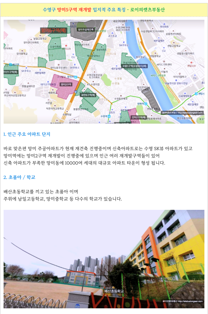 수영구 망미5구역 재개발 : 입지, 특징, 진행 상황, 일정 & 소액 매물