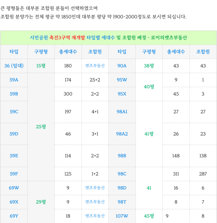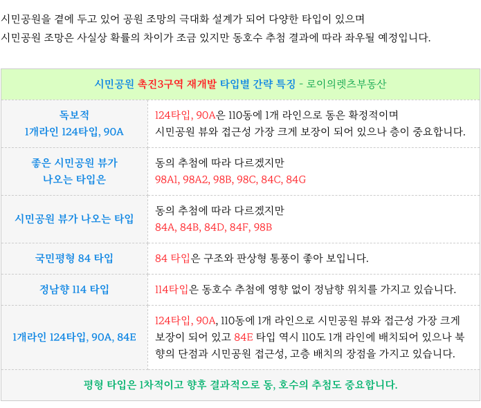 시민공원 촉진3구역 재개발 현재 가능한 타입별 최저 매물 소개해 드리겠습니다.
