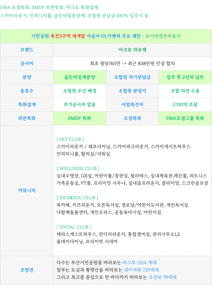 4. 아크로 시공사 특화 제안 간략 정리 : 촉진3구역 재개발 :
