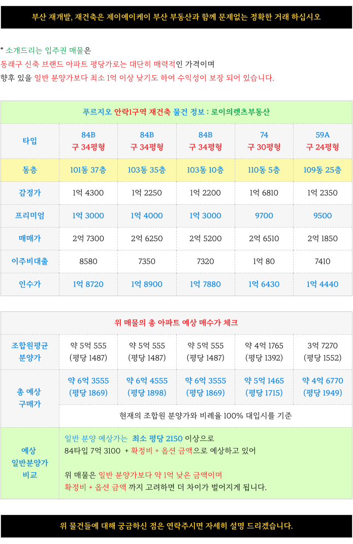 부산 전역 재개발 / 재건축에 대해 궁금하신 사항은 방문 또는 연락주시면 자세히 설명 드리겠습니다.