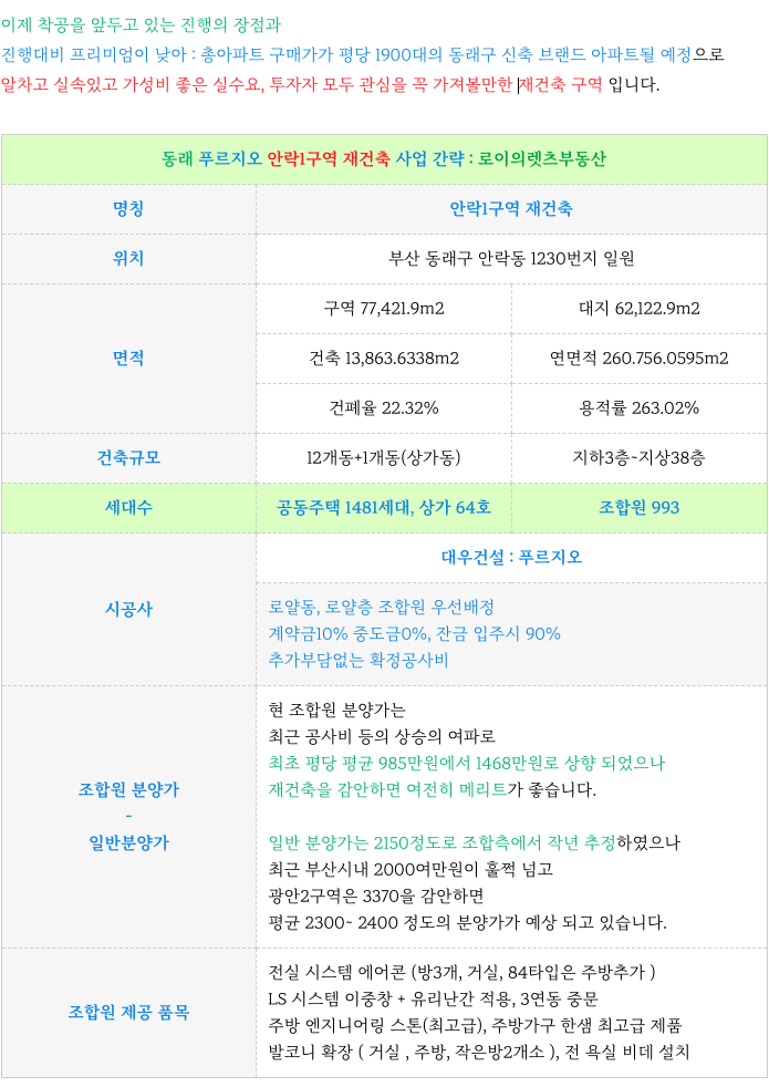 동래구 안락1구역 재건축 : 타입별 매물과 진행 상황, 소식