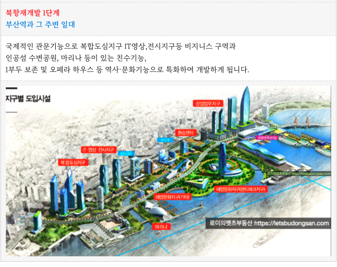 그럼, 북항재개발에 관해서도 간략 소개해 드리고 물건 소개해 드리겠습니다.
