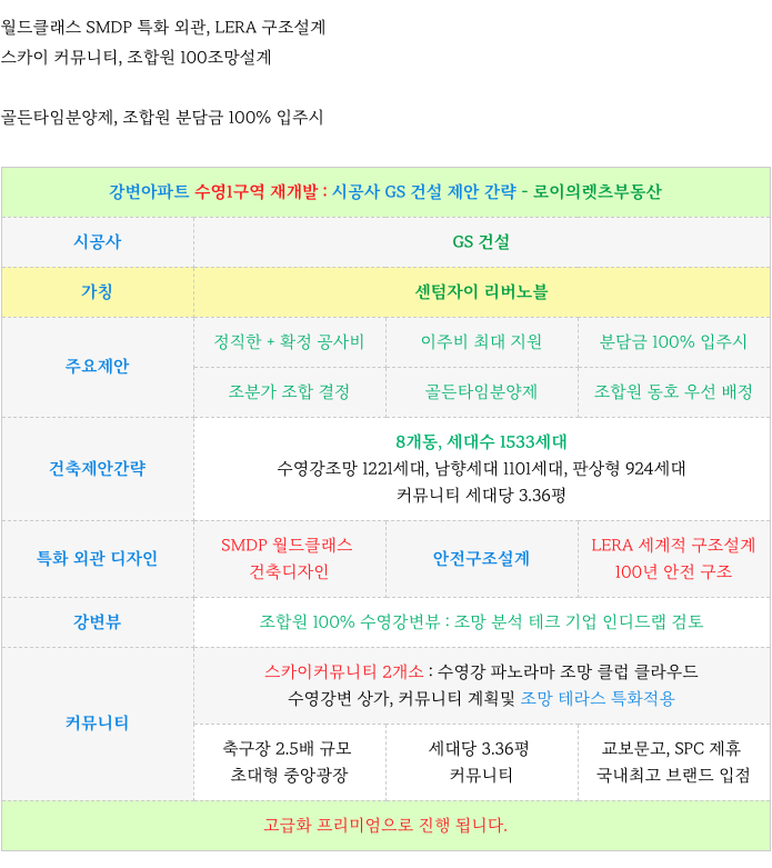 4. 수영1구역 재개발 : 시공사 GS건설 주요 제안 : 센텀자이 리버노블