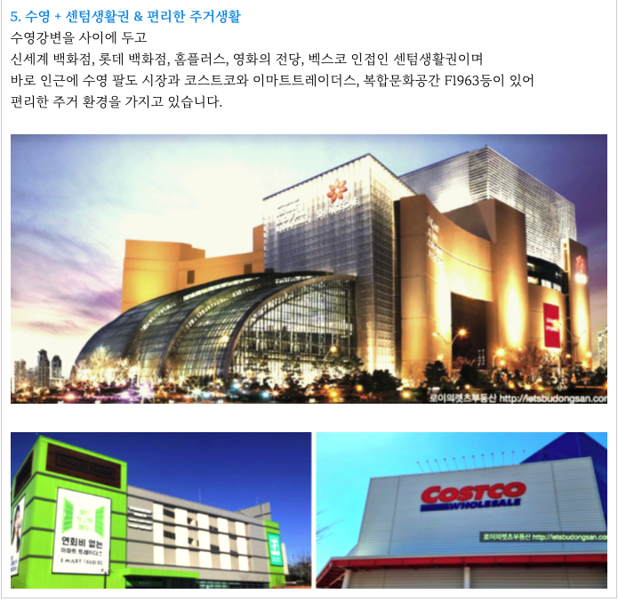 신세계백화점, 롯데백화점, 영화의전당, 부산시립미술관, 벡스코, 수영강변나루등