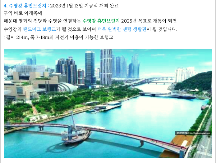 현재 공사중인 수영강 휴먼 브릿지가 구역 아래로 들어서면