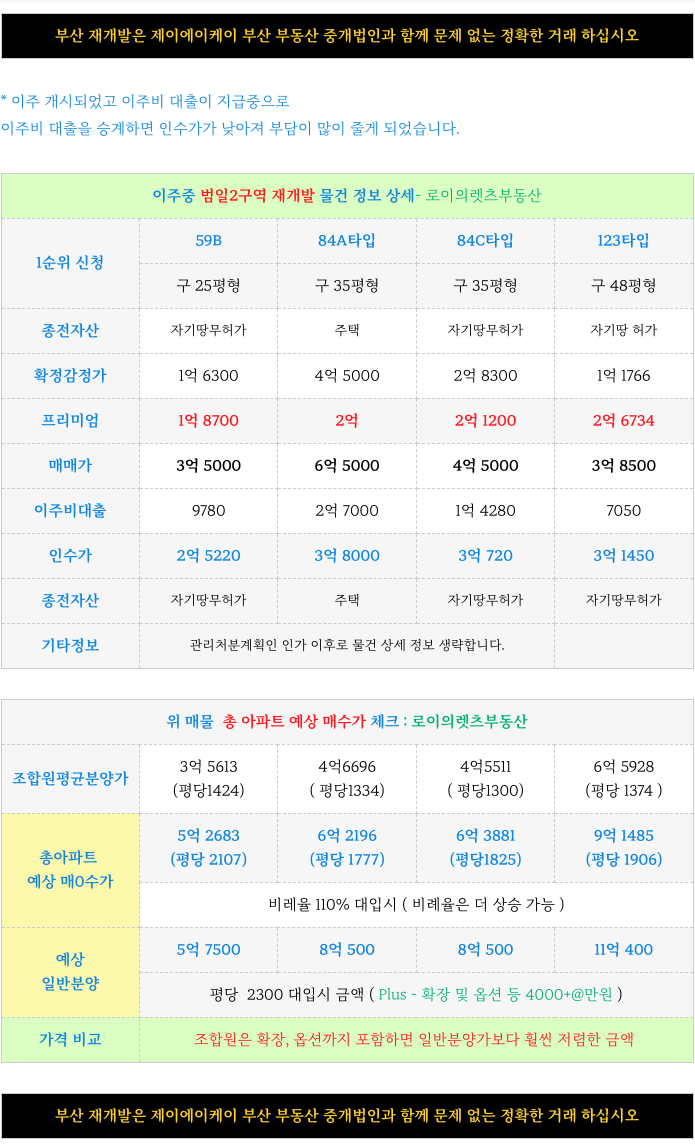범일2구역 재개발 : 타입별 매물 소개해 드리겠습니다.