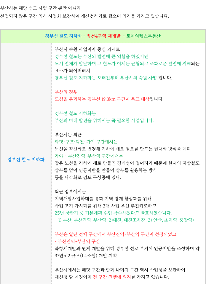1) 개발호재 : 경부선 철도 지하화