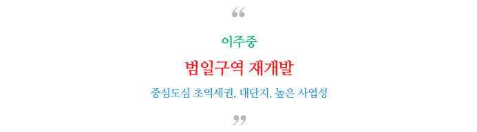 중심 도심에 초 역세권으로 좋은 사업성을 가지고 있으며