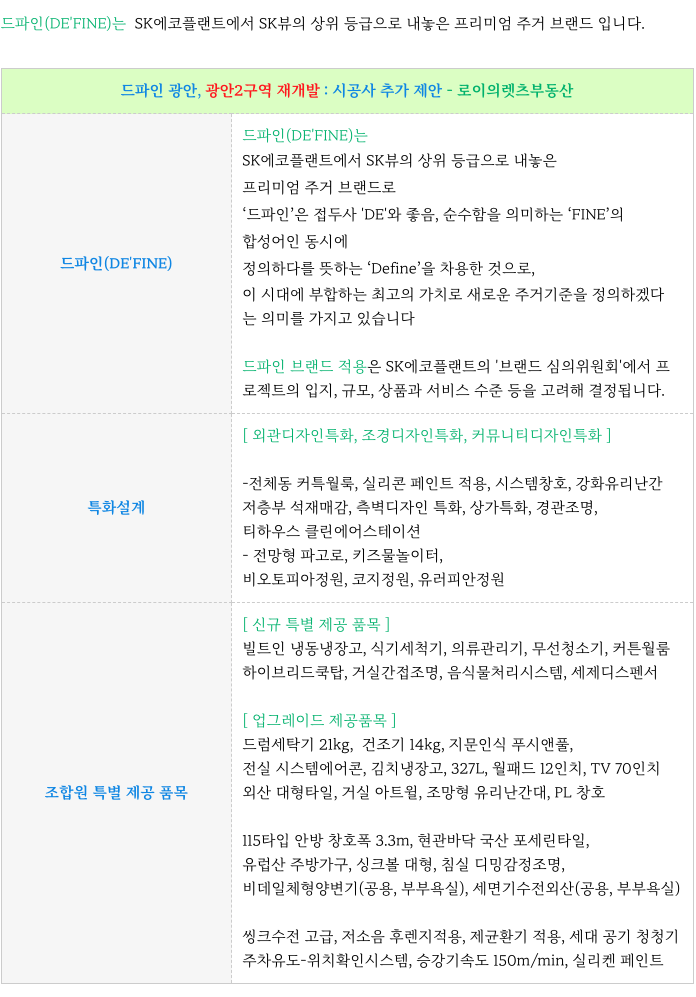 3. 시공사 SK건설 추가 제안 부분 : 드파인 광안 = 광안2구역 재개발 :
