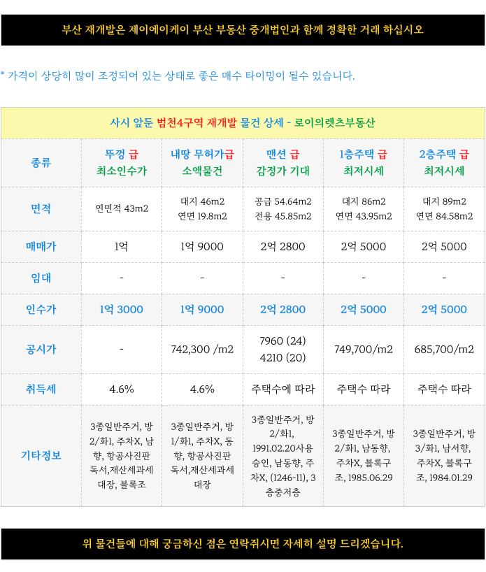 2. 현재 가능한 매물 소개 : 범천4구역 재개발 :