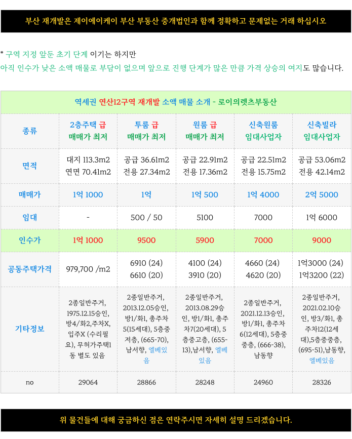 2. 연산12구역 재개발 : 현재 가능한 매물 소개 :