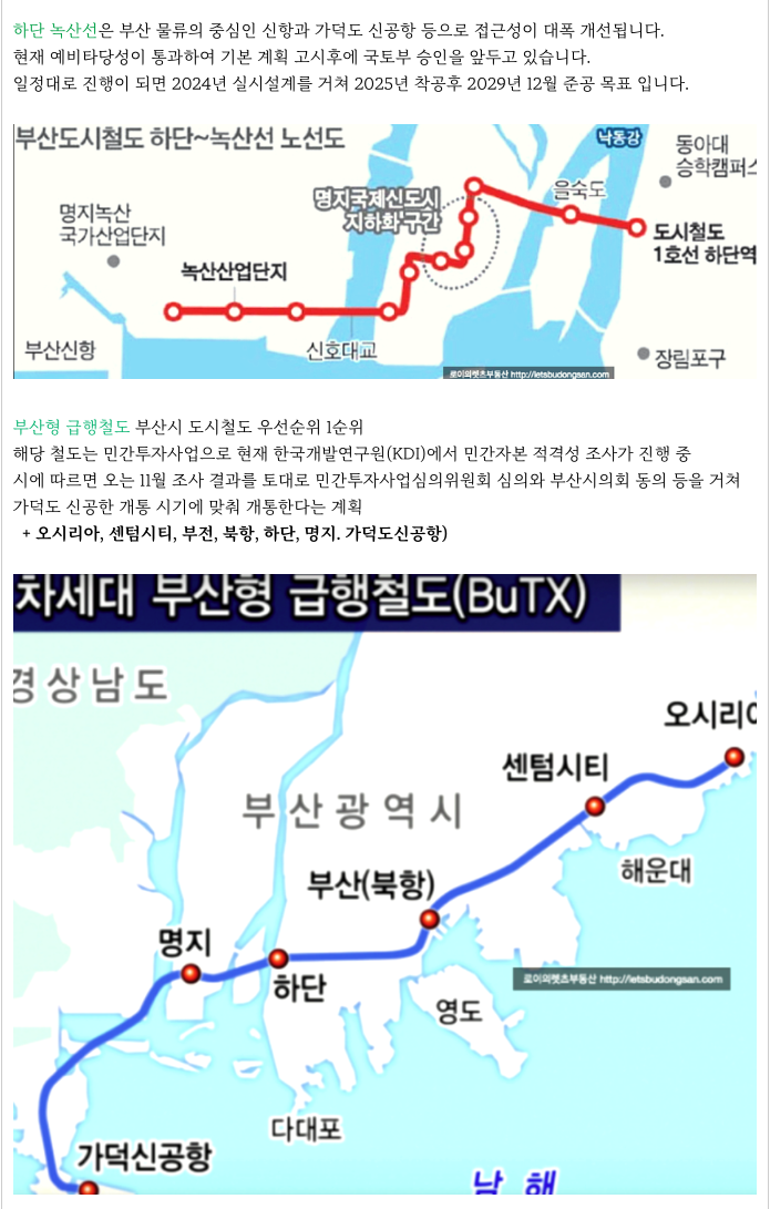 2) 개발호재 : 제2대티터널, 사상하단선, 부산행급행열차 (BuTX) 등