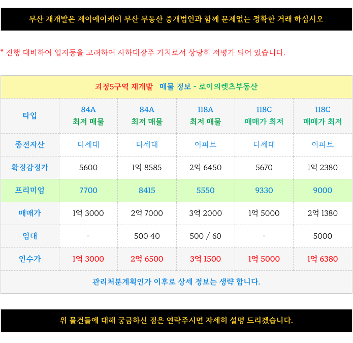 부산 전역 재개발에 대해 궁금하신 사항은 방문 또는 연락주시면 자세히 설명 드리겠습니다.