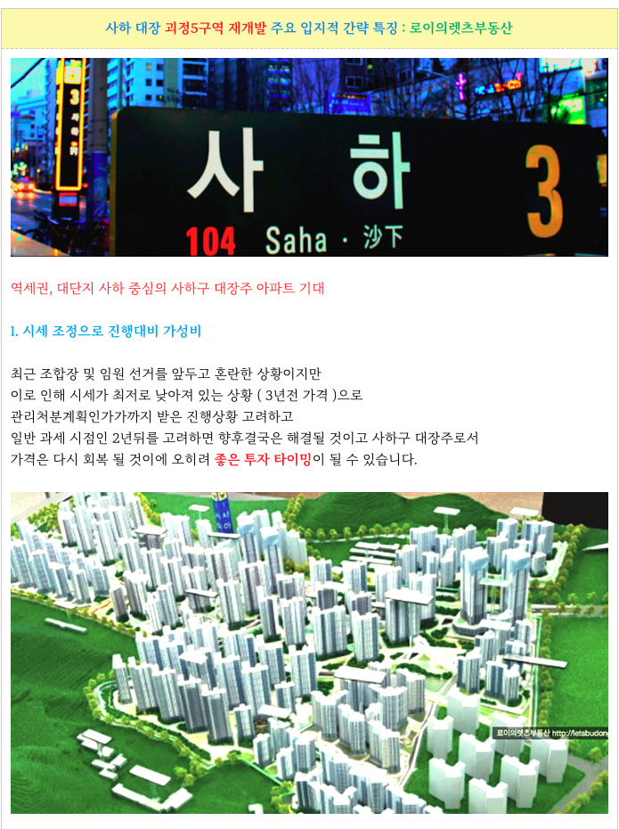 괴정5구역 재개발 :. 재개발 사업 주요 진행 & 예상 일정 체크 : 등 추가 정보는 아래 페이지를 참고 부탁드립니다.