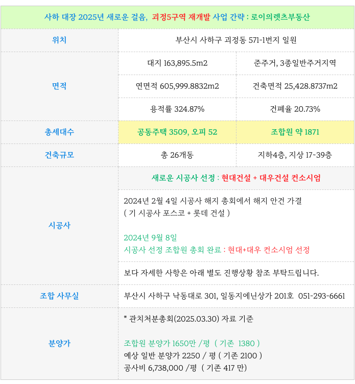 1. 재개발 사업 간략 요점 , 최근 진행 상황 : 괴정5구역 재개발 :