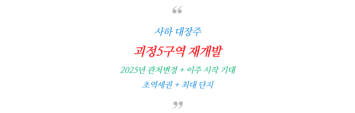괴정5구역 재개발 최근 진행 소식 체크 & 타입별 최저 매물 소개해 드리겠습니다.