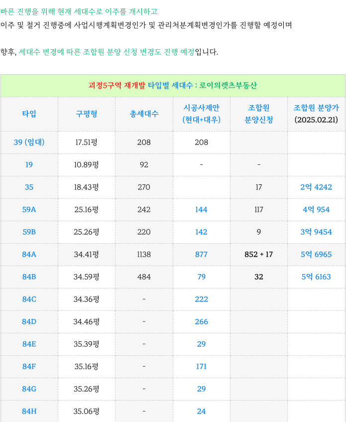 - 2025년 2월 21일 : 조합원 분양가 통지