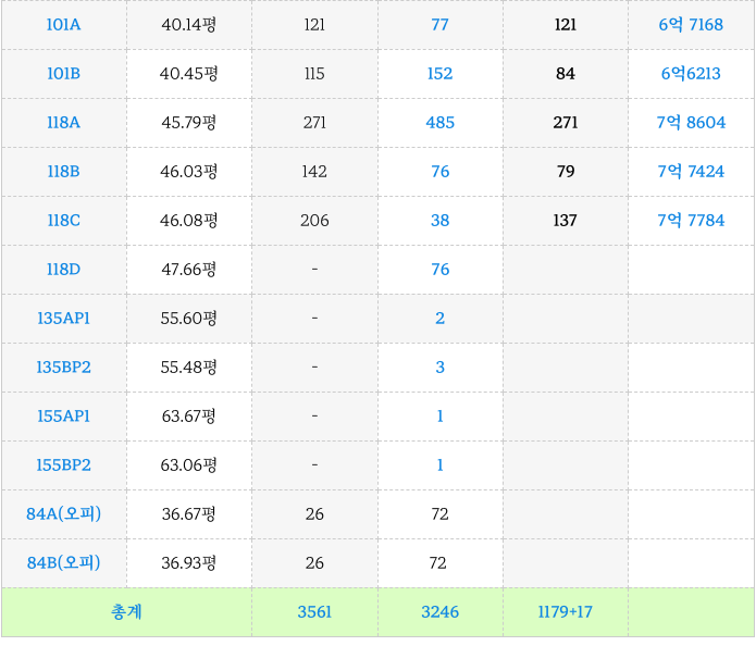 5. 계획된 각 타입별 세대수 : 괴정5구역 재개발 :