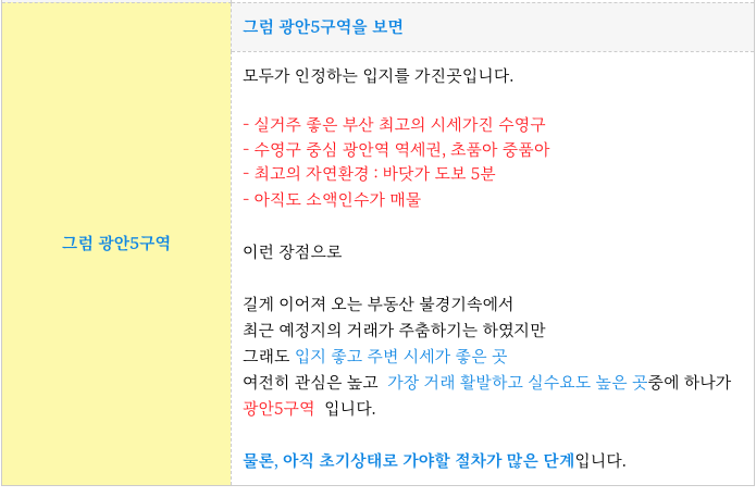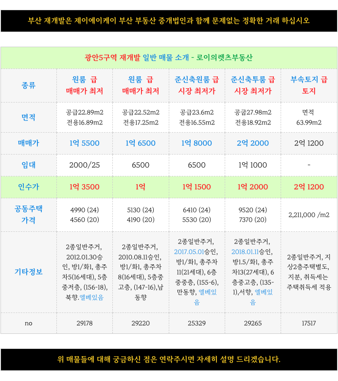 2. 최저 추 천 드리는 매물 소개 : 광안5구역 재개발 :