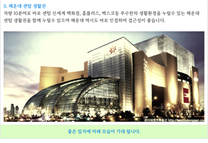 추가로, 해운대 센텀 생활권으로 ( 차량 10분 )