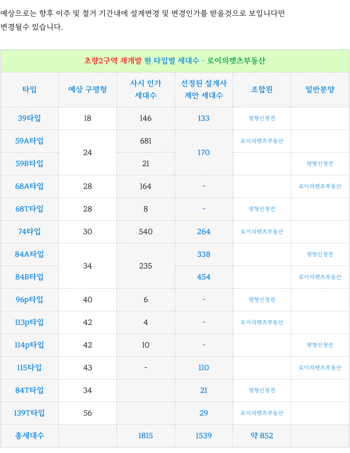 새롭게 선정된 설계회사의 제안세대수를 참고해 보시면 됩니다.