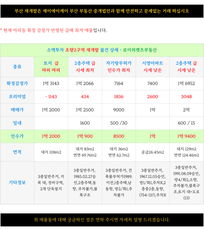 부산 전역 재개발에 대해 궁금하신 사항은 방문 또는 연락주시면 자세히 설명 드리겠습니다.