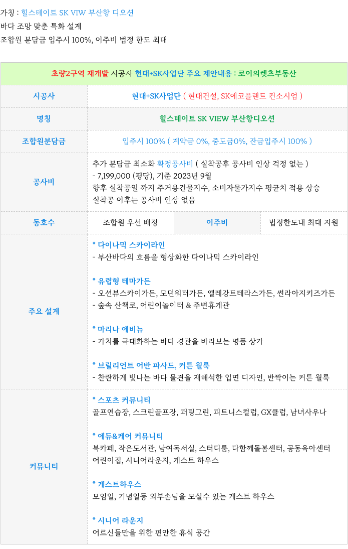 3. 초량2구역 재개발 : 시공사 현대 +SK 컨소시엄 주요 제안 :