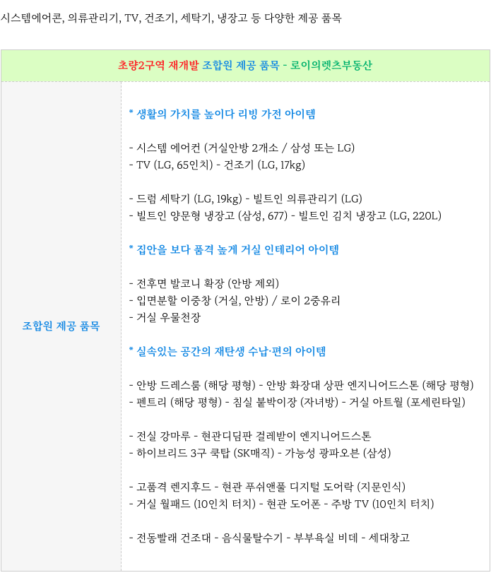 2) 조합원 특별 제공 품목