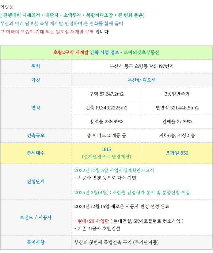 초량2구역 재개발 : 주요 진행 사항 & 이후 일정 체크 : 등 추가 정보는 아래 페이지를 참고 부탁드립니다.