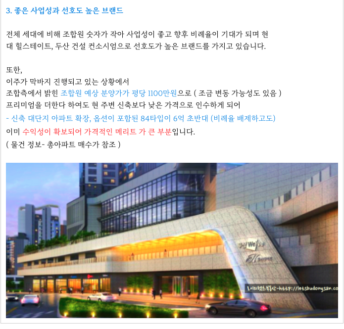 * 조합원 물건은 착공 앞둔 진행 대비하여 시세가 낮으며 일반 분양가보다도, 주변 시세보다도 낮아