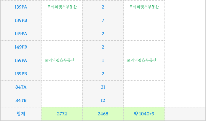 조합원 분들은 모두 84타이상 배정이 가능해 보입니다.
