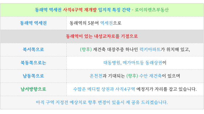 * 실거주 좋은 동래구, 역세권 미래 기대되는 입지를 가지고 있습니다.