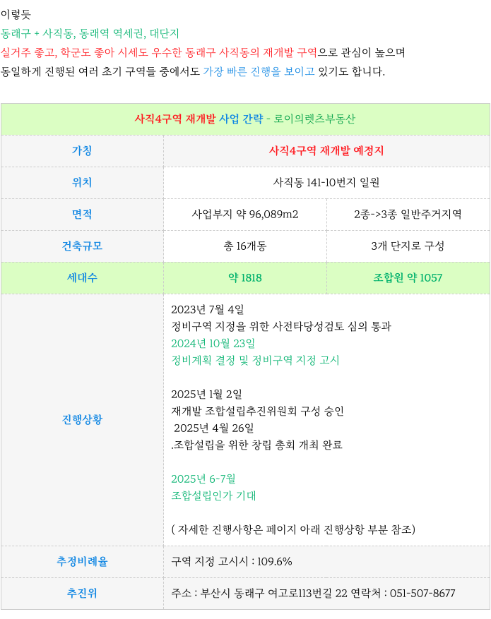 부산 전역 재개발에 대해 궁금하신 사항은 방문 또는 연락주시면 자세히 설명 드리겠습니다.