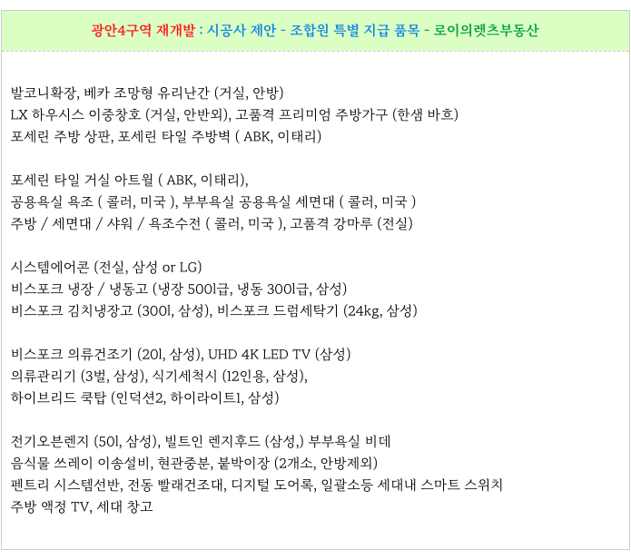 3. 광안4구역 재개발 : 시공사 현대산업개발 주요 제안 :