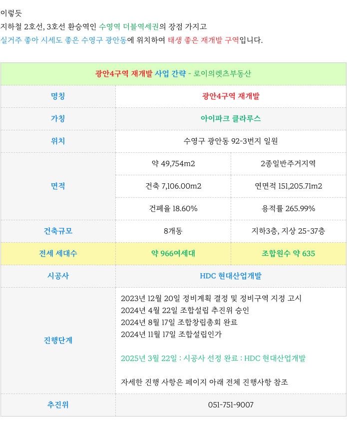광안4구역 재개발 : 사업 진행 사항 & 이후 예상 일정 체크 : 등 추가 정보는 아래 페이지를 참고 부탁드립니다.