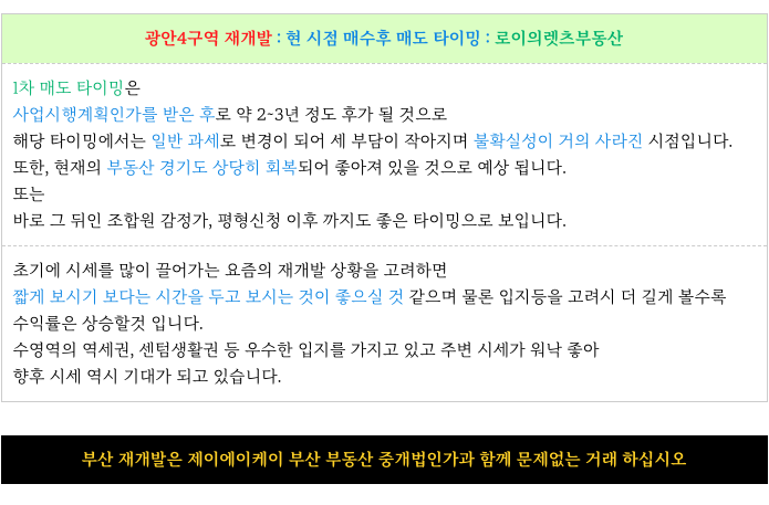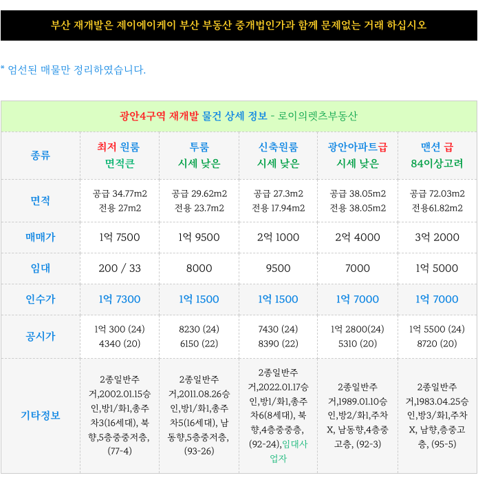 2. 광안4구역 재개발 : 최저 매물 소개 :