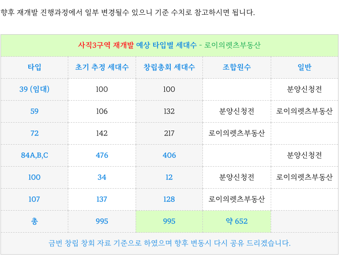 3. 계획된 각 타입별 세대수 : 사직3구역 재개발 :