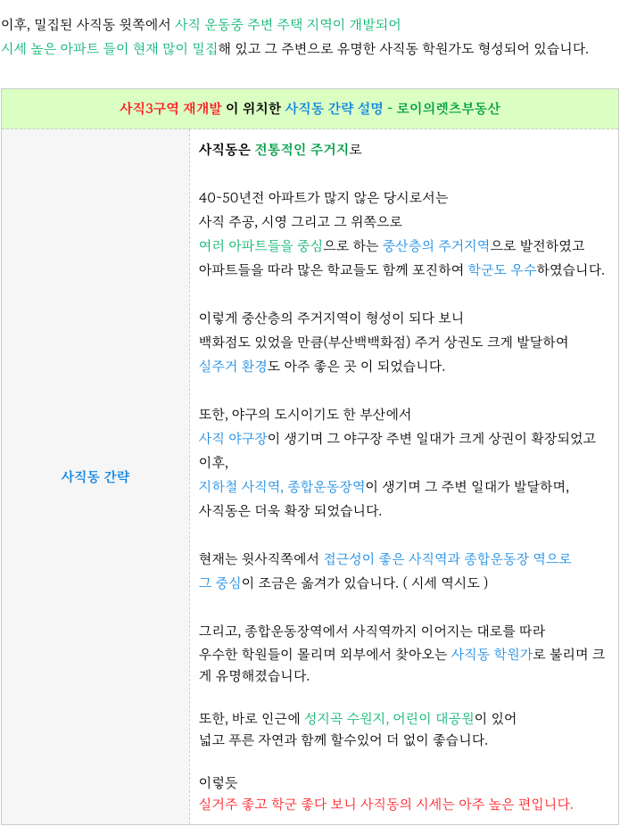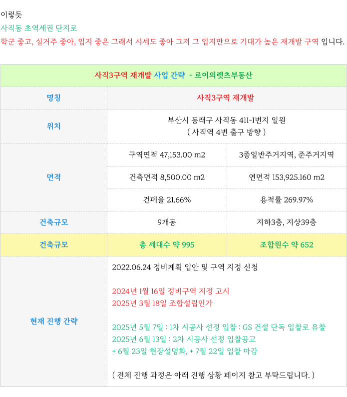 사직3구역 재개발 : 재개발 진행 사항 & 예상 일정 체크 : 등 추가 정보는 아래 페이지를 참고 부탁드립니다.'